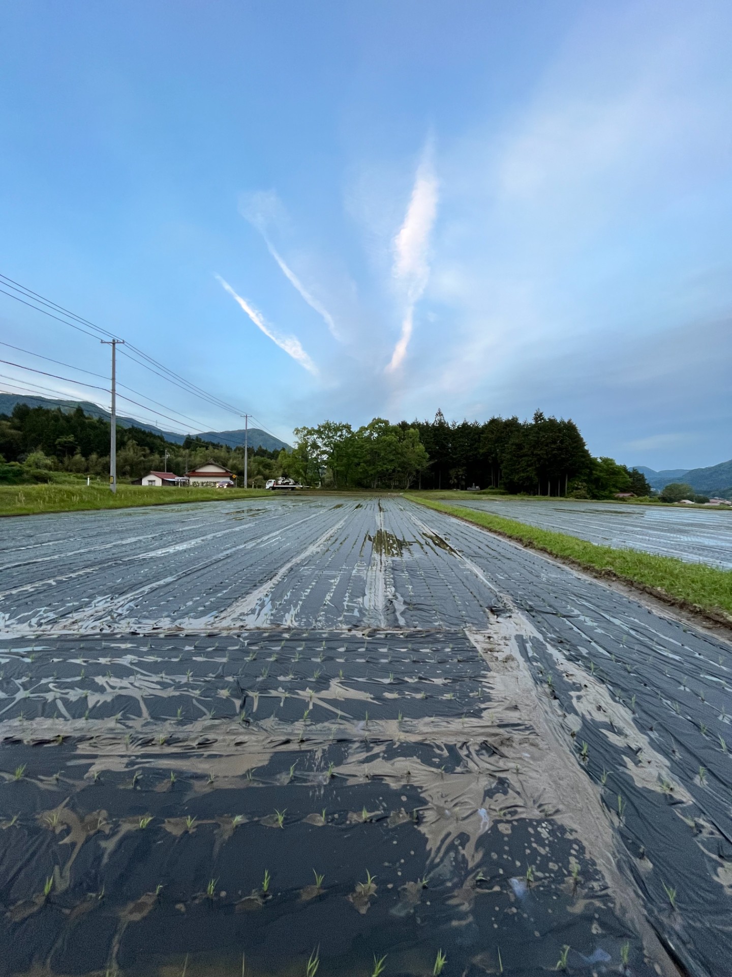 当園では、化学薬品を一切使わず、稲が健やかに育つ環境をつくるために「紙マルチ」を導入しています。紙を水田に敷くことで雑草の繁茂を防ぎ、稲が栄養を十分に吸収できる環境を整えています。これにより稲はストレスなく成長し、粒ぞろいで甘みの強い有機栽培米に仕上がります。